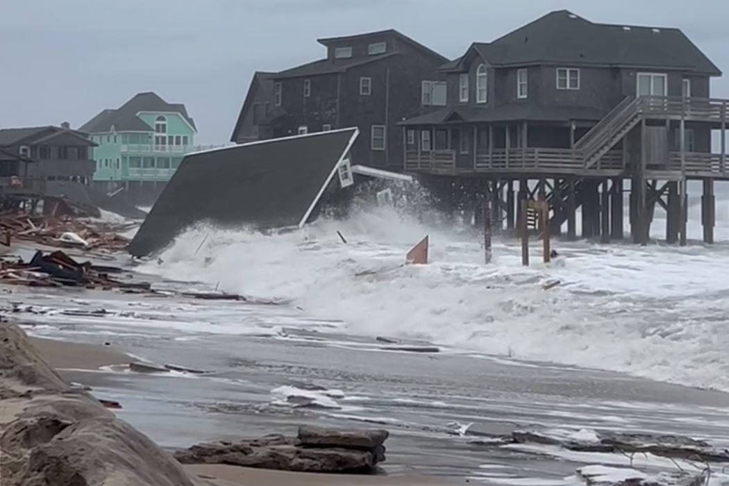 Six unoccupied houses along North Carolina's Outer Banks have collapsed into the ocean as hurricanes Humberto and Imelda rumble in the Atlantic, the latest private beachfront structures to fall as sea levels rise due to global warming, per the AP. Five of the homes, once propped on high stilts, collapsed Tuesday afternoon in Buxton, a community on the string of islands that make up the Outer Banks, said Mike Barber, a spokesperson for the National Park Service. A sixth home in Buxton collapsed overnight, the NPS said on its website. No injuries had been reported Tuesday, the Cape Hatteras National Seashore said in a post on social media.