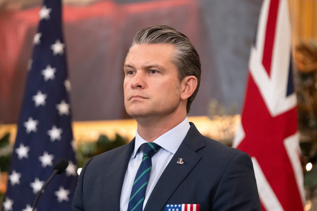 Defense Secretary Pete Hegseth listens during an event at the State Department, Monday, Dec. 8, 2025, in Washington.   (AP Photo/Mark Schiefelbein)