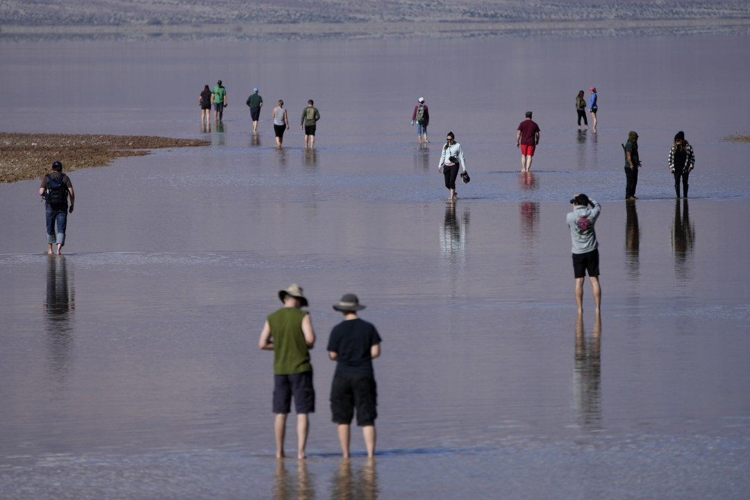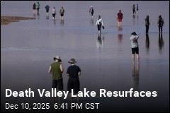 An ancient lake has made a rare return to Death Valley National Park, drawing visitors hoping to glimpse a phenomenon thousands of years in the making. After record rainfall, several inches of water pooled in Badwater Basin—the lowest point in North America, at 282 feet below sea level—reviving what's popularly known as Lake Manly. During the Ice Ages, the basin held a lake nearly 100 miles long and 700 feet deep, ABC News reports.