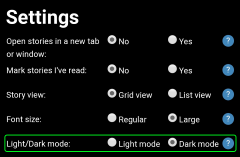 Do you prefer Newser with a dark background and light text? This feature will change our pages so they have a dark background with light text (dark mode) as opposed to the default experience (light mode) where the background is light and the text is dark. Here's the link to the settings page so you can try it.